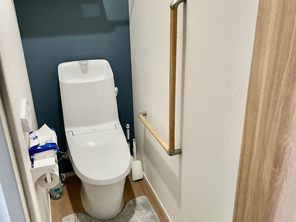 洗面&トイレはペーパータオルを使用しています。手すりを設置して、安全面に配慮しました。